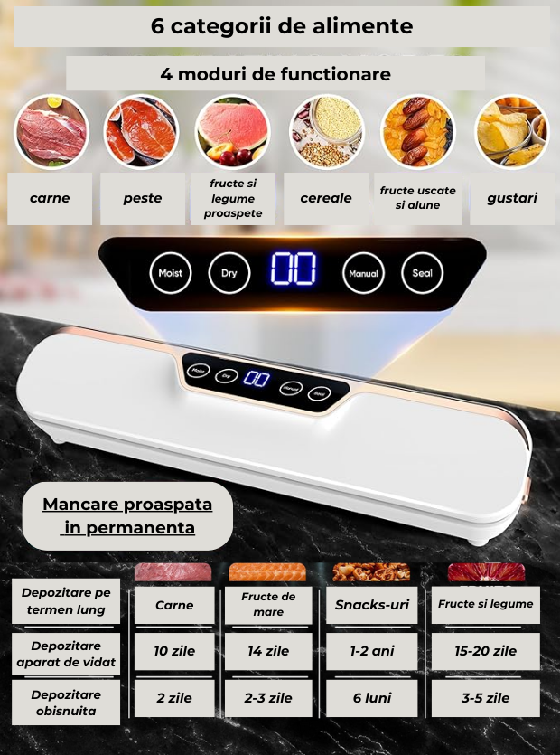 - Economisiti Timp si Resurse: Prelungiti durata de viata a alimentelor si reduceti risipa alimentara.